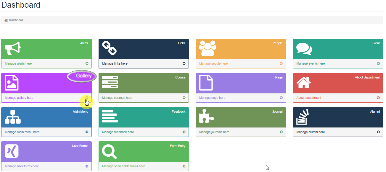 In content Management system, Gallery is a section wherein a user can update the Photo gallery page of the website.