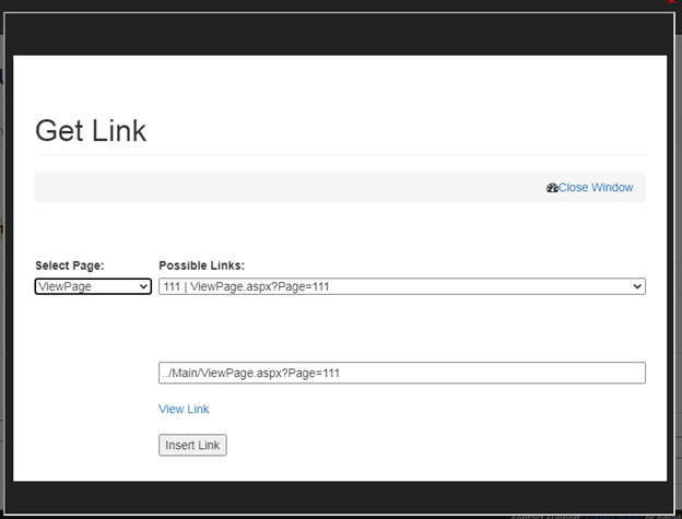 • Click on Insert link option to link the page to main menu or links.